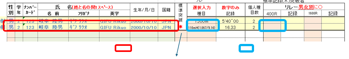 | 標準記録A突破者は"A"を選択, 標準記録B突破者は"B"を選択 | ||||||||||||||||||||||||||||||||